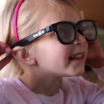 Sebastian was at a friend’s birthday party yesterday. The group went to the 3D movie Monsters vs. Aliens. The theater gave out special pairs of glasses to view the movie. The kids all had a blast. Sophia decided to check out the new 3D glasses when Sebastian got home to see how they work. I don’t think they had the same effect as in the theater, but she sure looked cute.